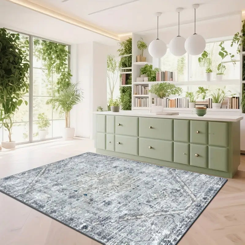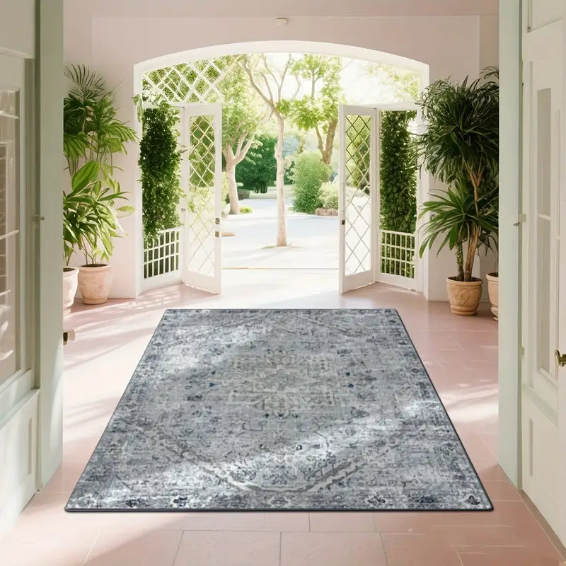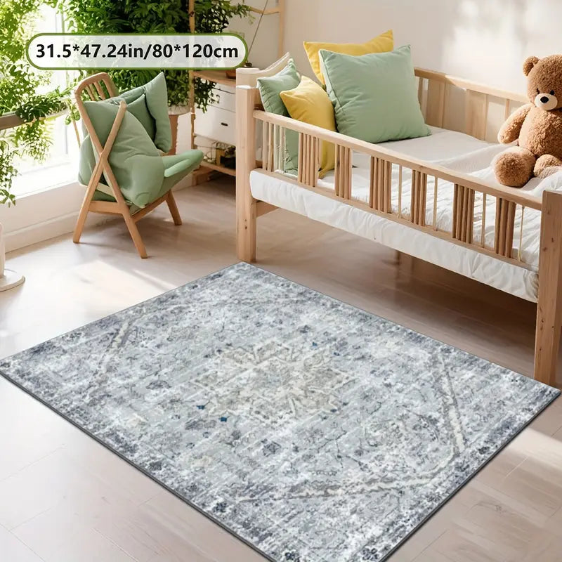 tapis rectangulaire • tapis poils courts • tapis facile d’entretien • déco scandinave • tapis effet vintage • Tapis chambre enfant • tapis gris