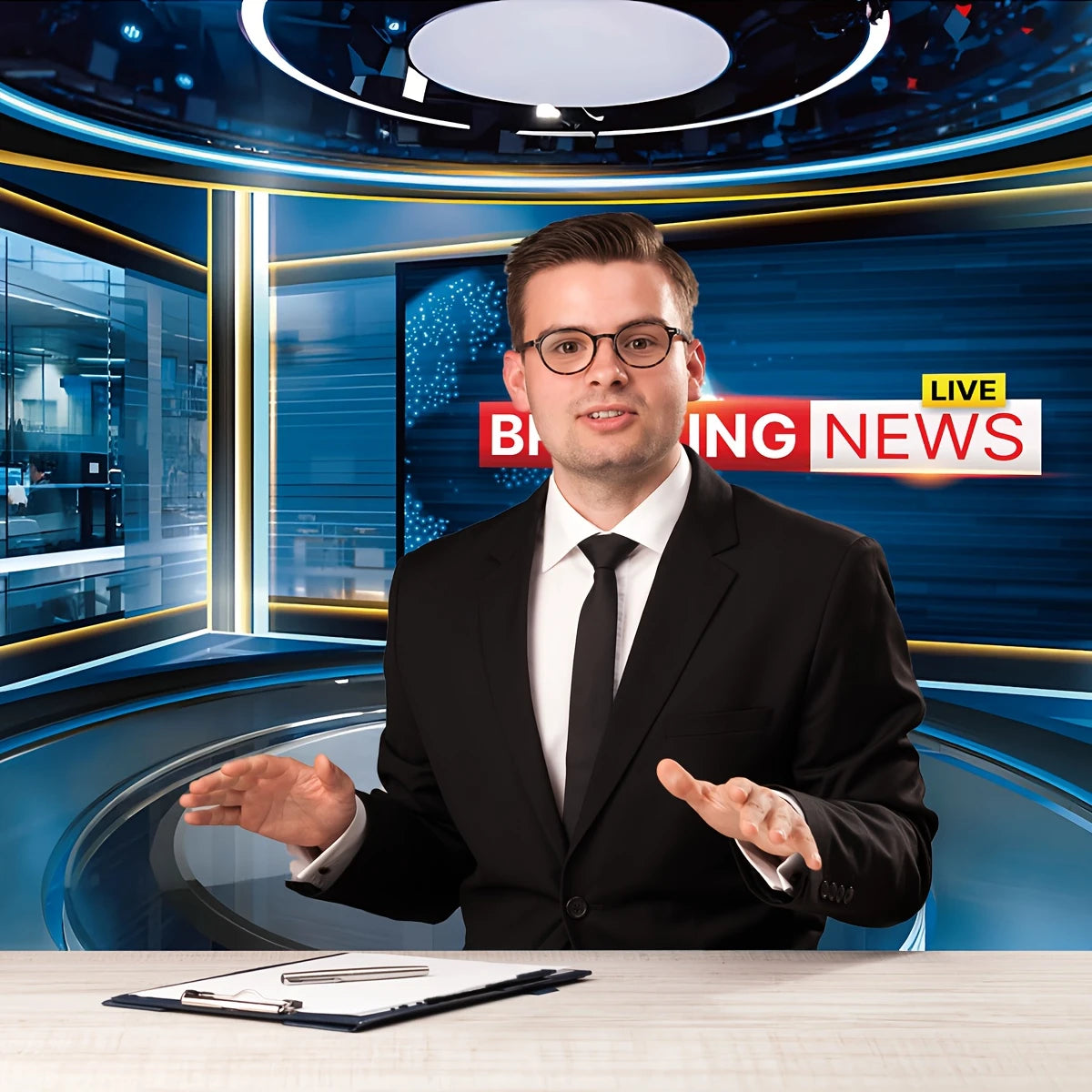 Toile de Fond Studio Breaking News – Décor Professionnel pour Vidéos, Lives & Interviews