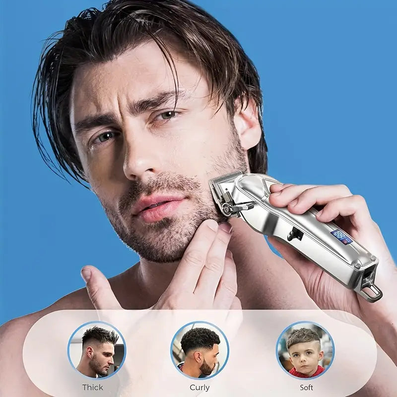 Tondeuse de Coupe Professionnelle Sans Fil – Écran LED, 12 Sabots, Kit Complet pour Coiffeur & Barbier