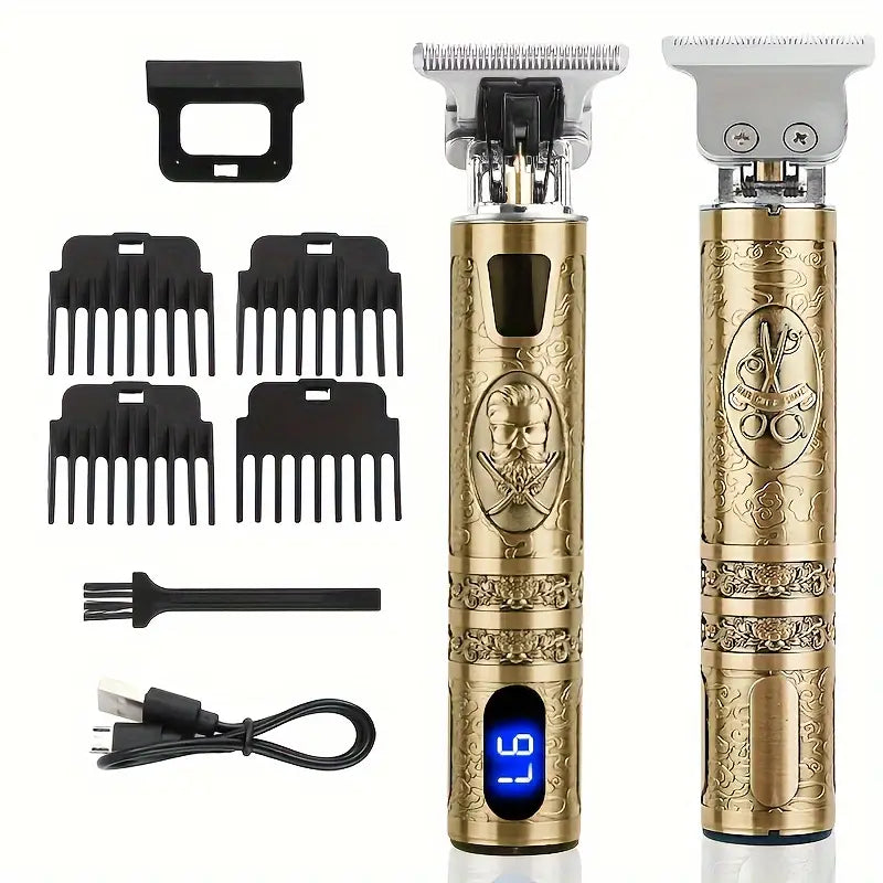 Tondeuse de Précision Dorée – T-Blade Rechargeable, Design Dragon, Gentleman, Monsieur, 4 Sabots, Coupe Dégradée et Contours Pro
