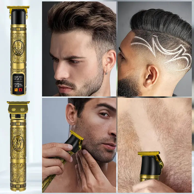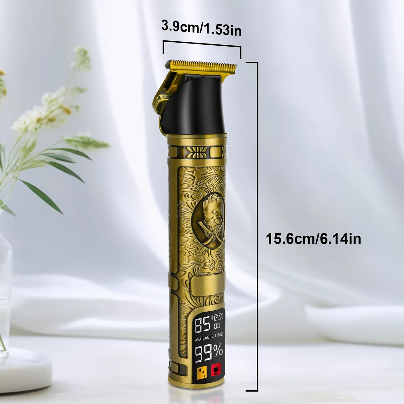 Tondeuse de Précision Électrique Or – Coupe Cheveux & Barbe, Écran Digital LCD, 6 Sabots, Recharge USB, Style Vintage