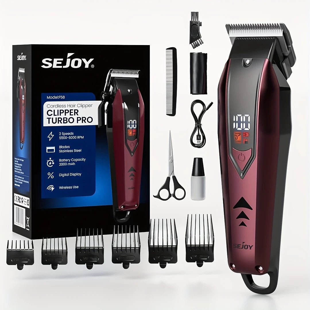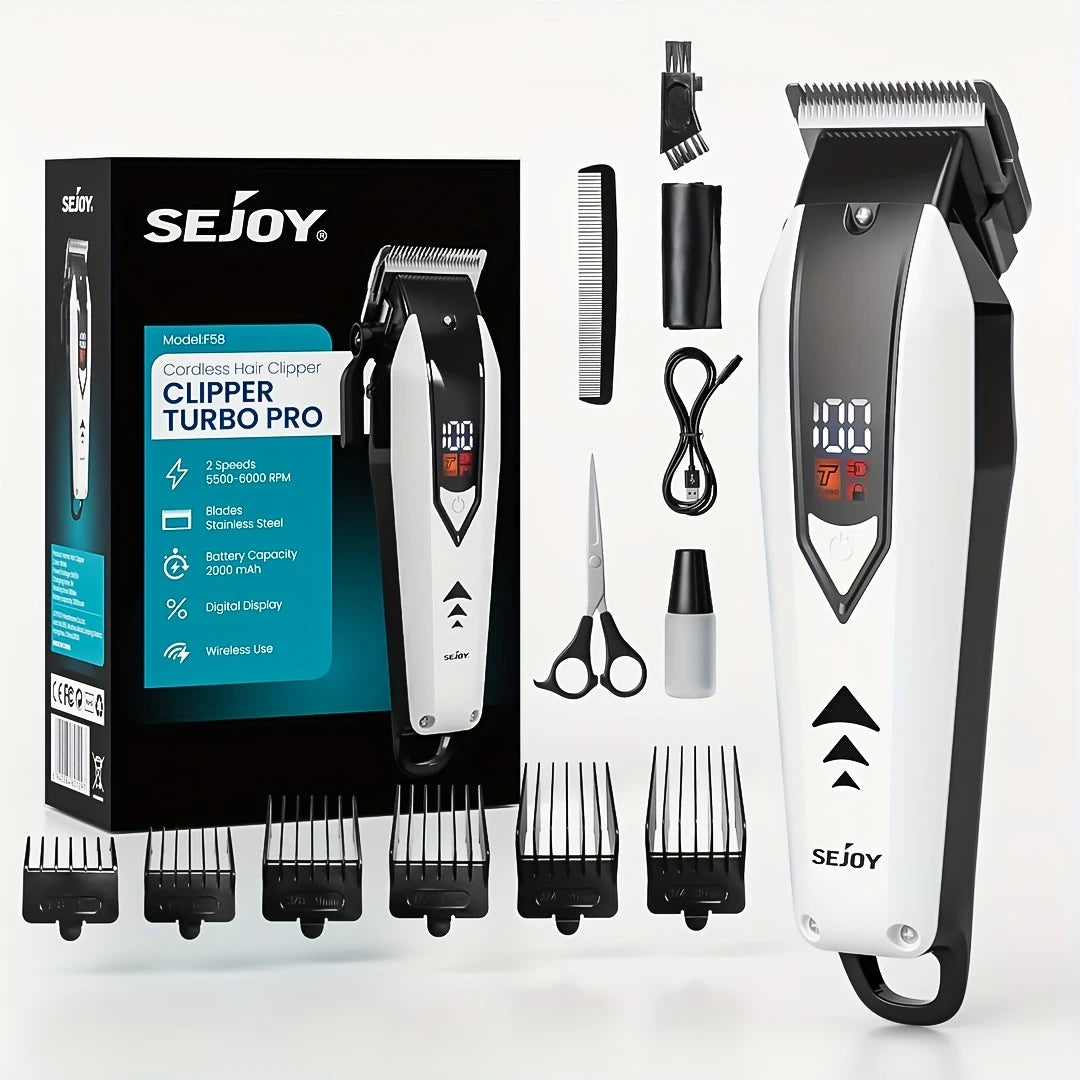 Tondeuse Professionnelle Sejoy Turbo Pro – Sans Fil, Écran LED, 2 Vitesses, Sabots Réglables & Accessoires Complets