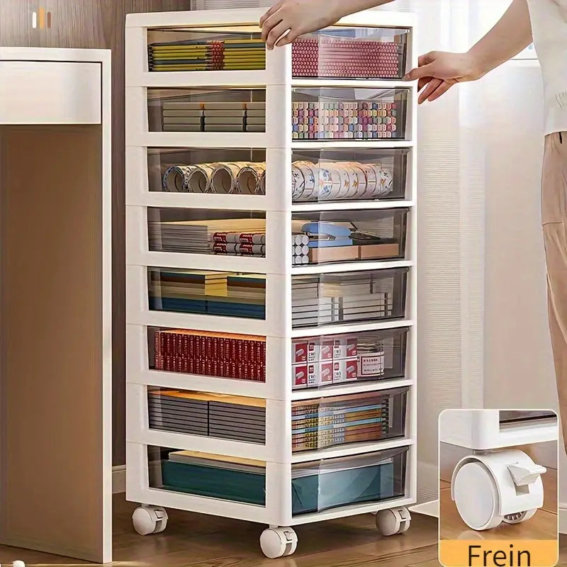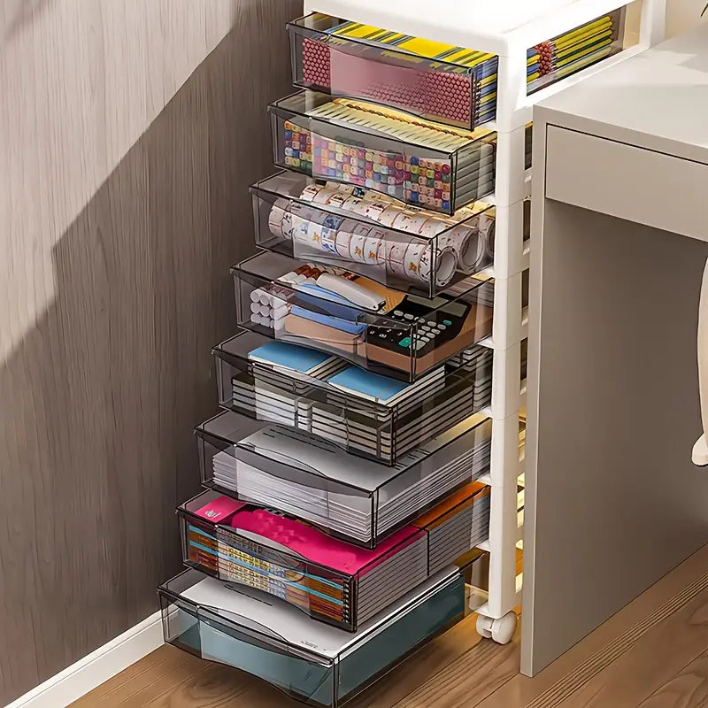 Tour de rangement à tiroirs transparents sur roulettes – organisateur multi-niveaux