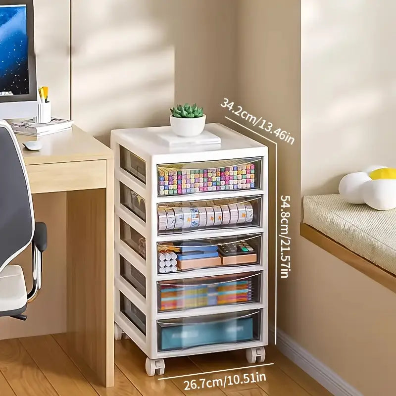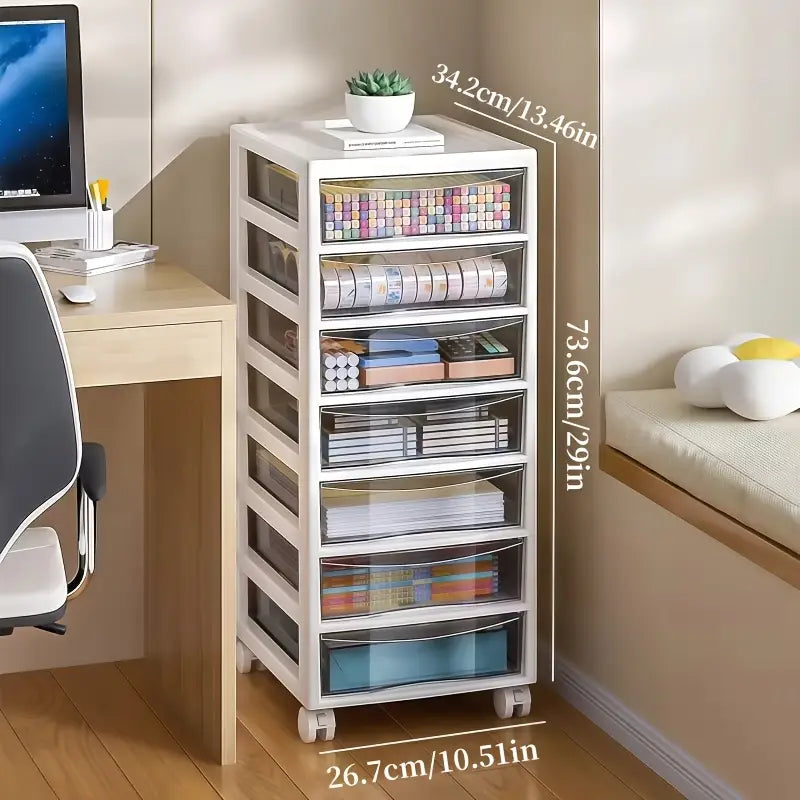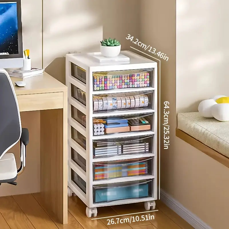 Optimisez vos mètres carrés avec cette tour de rangement compacte. Ses tiroirs transparents offrent une visibilité immédiate sur papeterie, accessoires DIY, documents ou cosmétiques. Véritable organisateur multi-niveaux, ce meuble de rangement se glisse sous ou à côté d’un plan de travail pour un gain de place maximal au bureau, à l’atelier ou en boutique, avec un design discret et moderne.