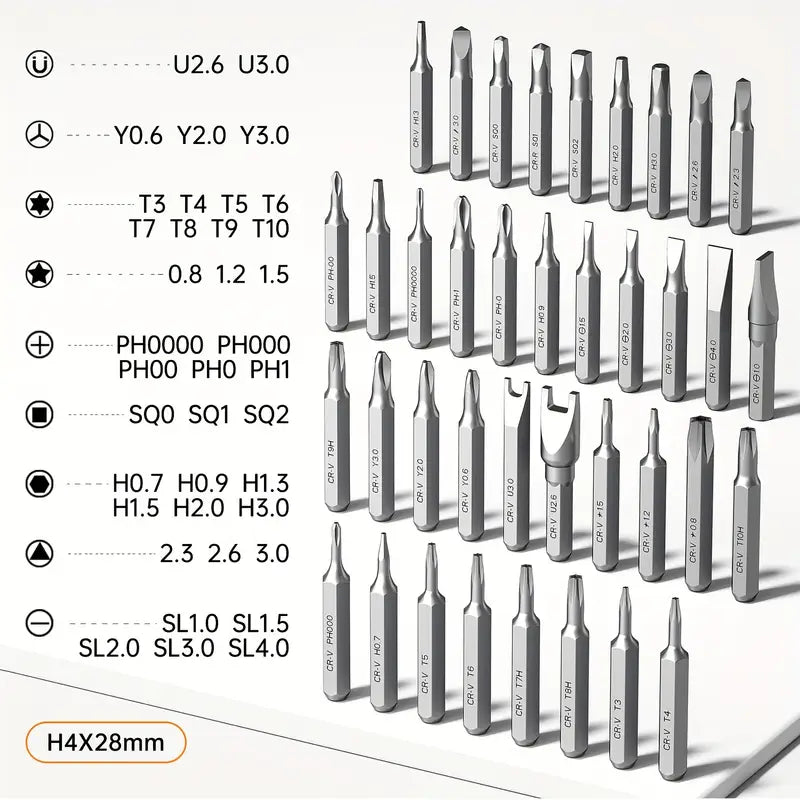 Parfait comme outillage réparation électronique: tournevis smartphone laptop, consoles, drones, lunettes, montres, appareils photo, jouets et projets DIY de précision.