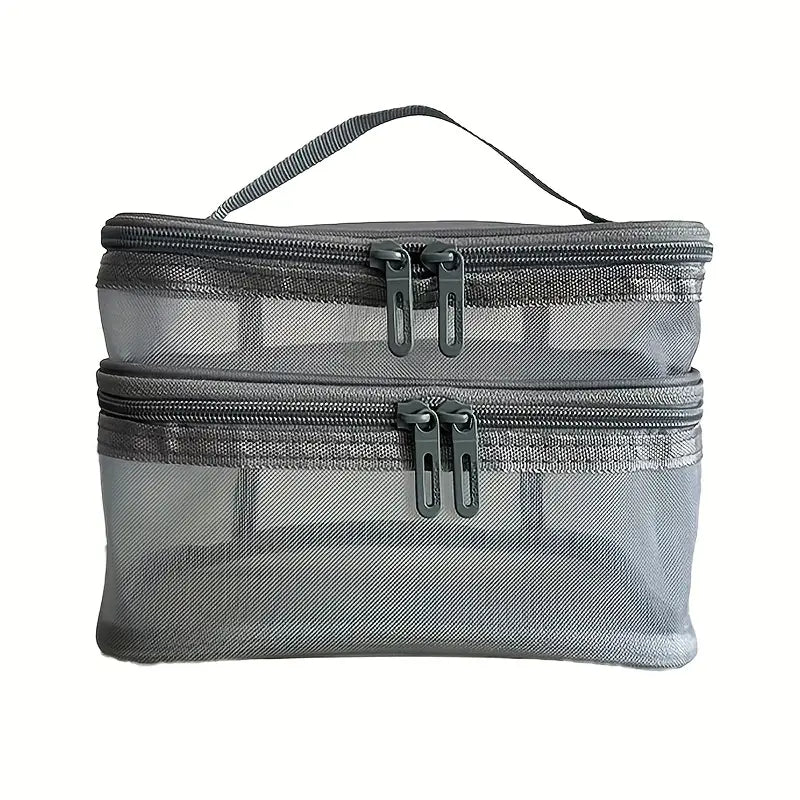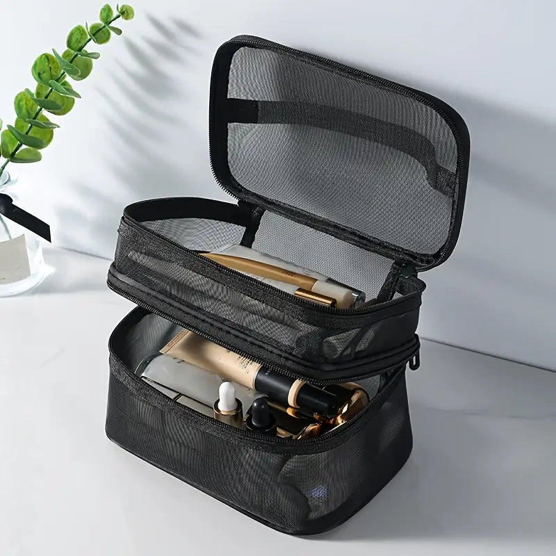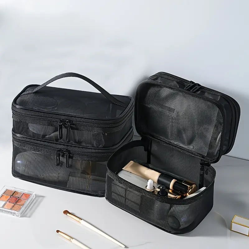 Vanity de voyage 2 étages en maille – trousse de toilette/maquillage à double compartiment