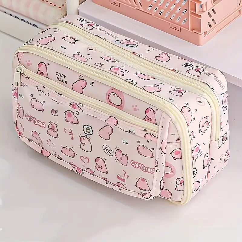 Trousse de Rangement Bébé Motif Capybara – Pochette Organisateur Multifonction pour Papeterie et Accessoires