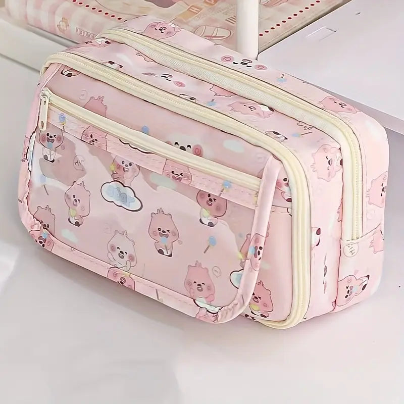 Trousse Kawaii Capybara avec poche transparente et double zip
