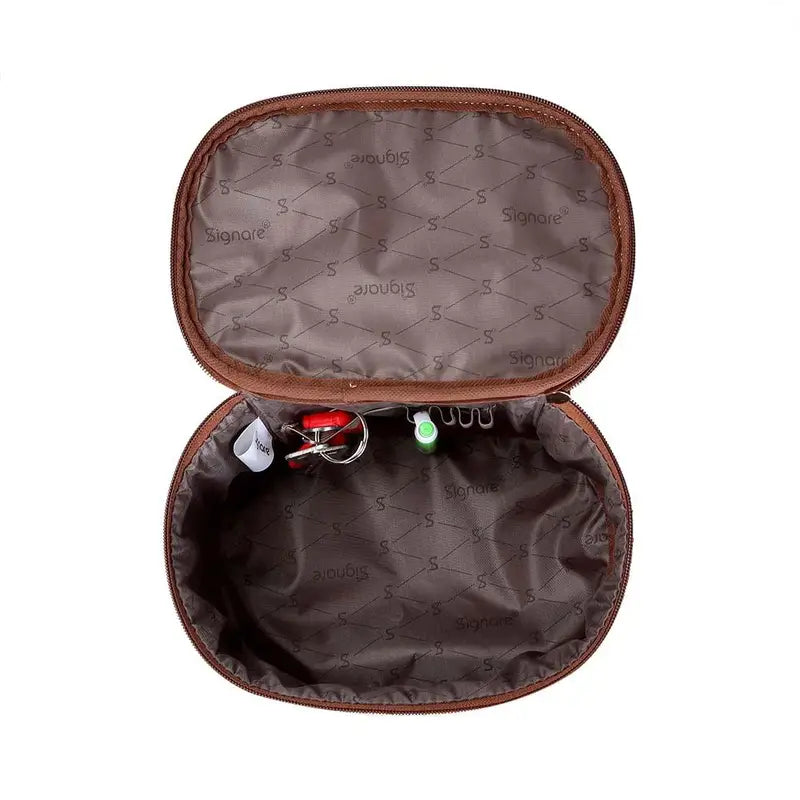 Conçue pour durer, cette trousse présente une poignée façon cuir robuste pour une prise en main confortable et un transport sans effort. Idéale comme trousse maquillage voyage, elle organise cosmétiques, soins, bijoux ou petits accessoires tech avec distinction.