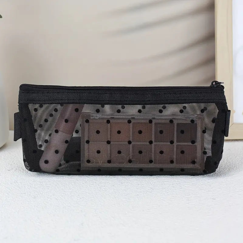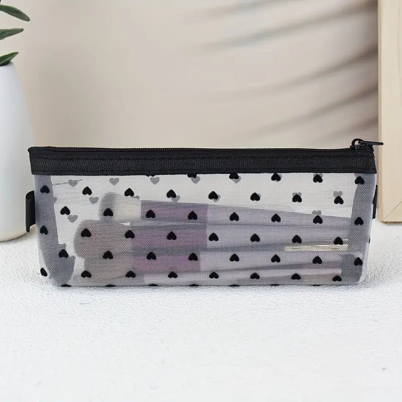Trousse Maquillage Transparente en Maille avec Cœurs – Pochette de Rangement Stylée et Respirante