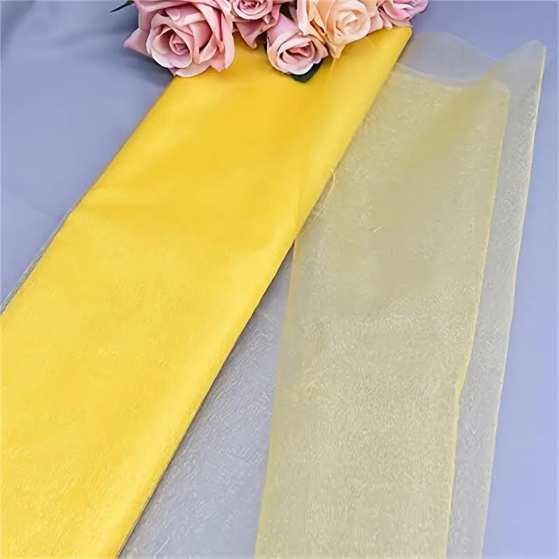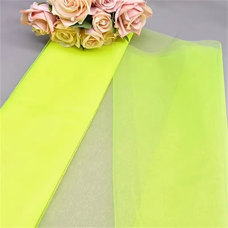 Tulle organza jaune fluo pour emballage cadeau – Rouleau tissu décoratif transparent pour artisanat, bouquets et événements