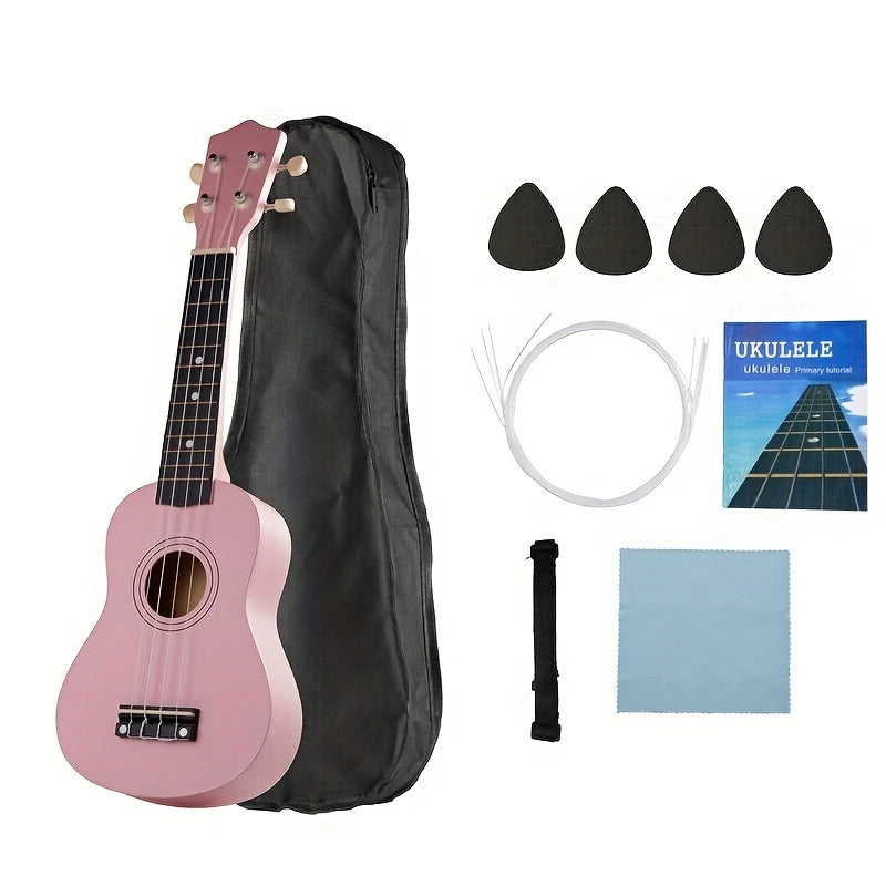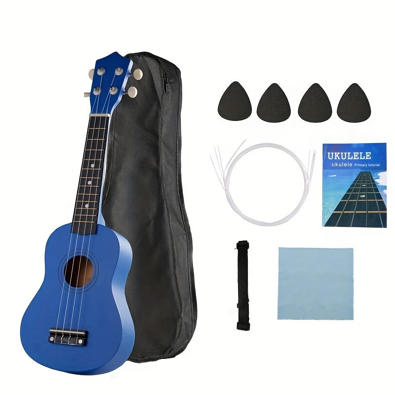 Ukulélé Soprano 21" avec Housse, Cordes, Médiators et Guide – Kit Complet pour Débutants