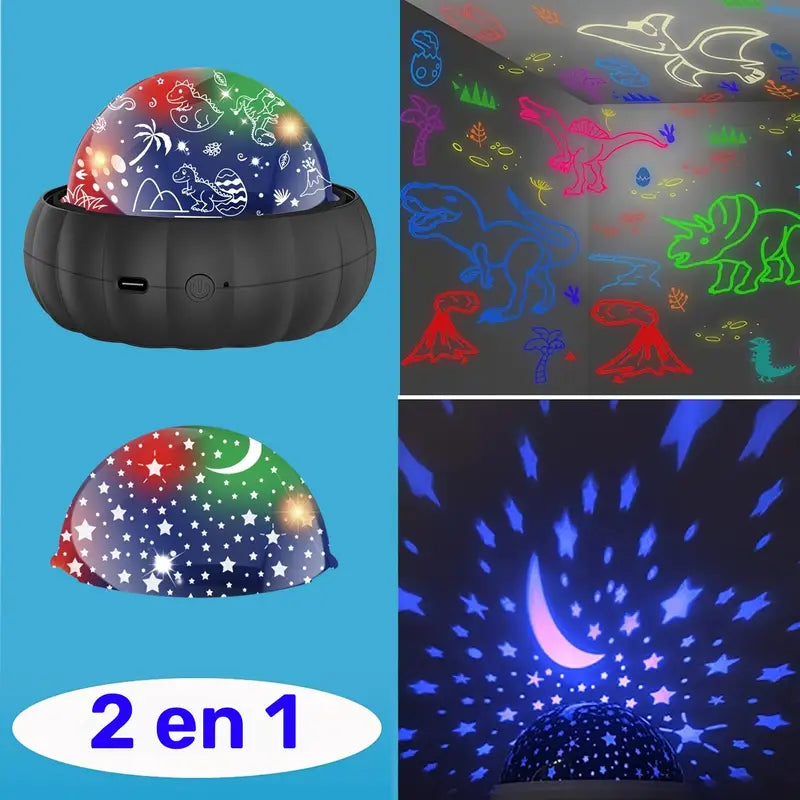 Veilleuse Projecteur Étoiles et Dinosaures LED – Lampe de Nuit Rechargeable pour Chambre Bébé et Enfant