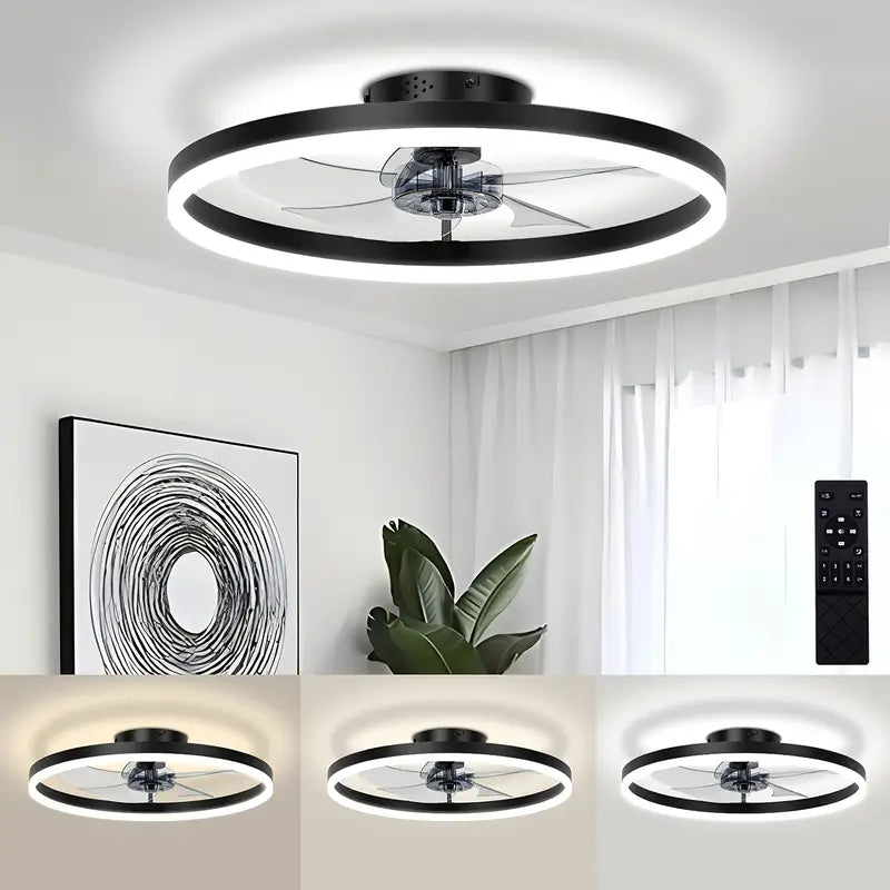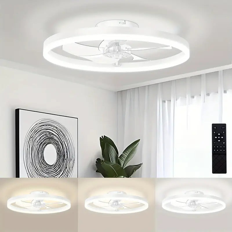 Ventilateur de Plafond LED Moderne avec Lumière Anneau et Télécommande – Silencieux, 3 Couleurs d’Éclairage