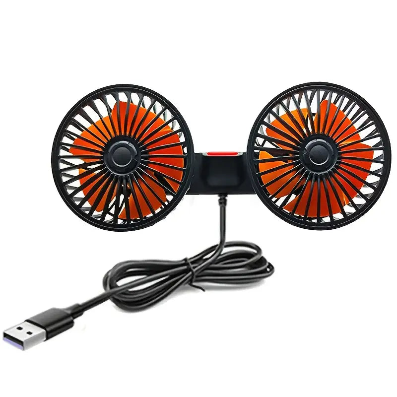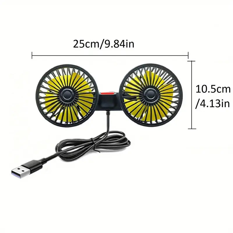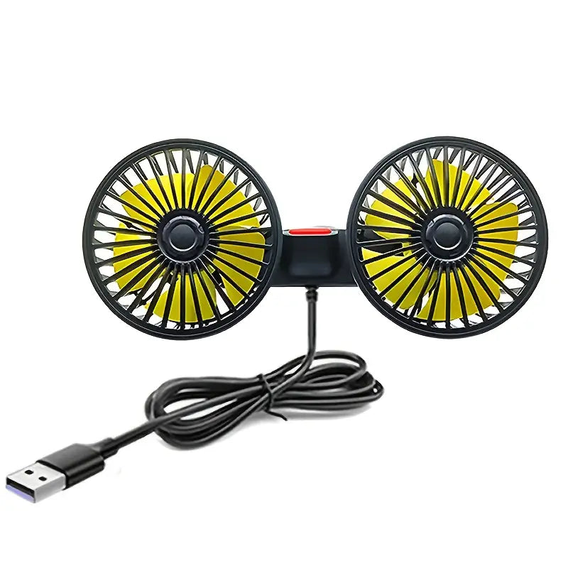 Ventilateur Double Tête Rotatif pour Voiture – USB Rechargeable, Silencieux et Orientable à 360°