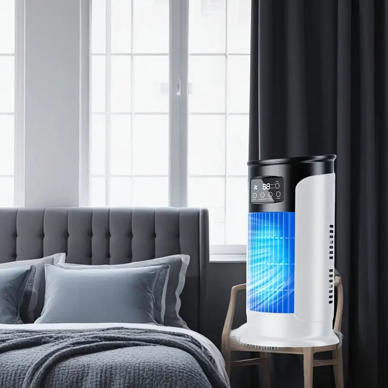 Profitez d’une fraîcheur immédiate et d’un confort sur mesure avec ce ventilateur refroidisseur d’air pensé pour la maison et le télétravail. Son interface à écran tactile LED facilite chaque réglage, tandis que le flux d’air optimisé assure une circulation homogène pour respirer mieux, travailler ou dormir sereinement.
