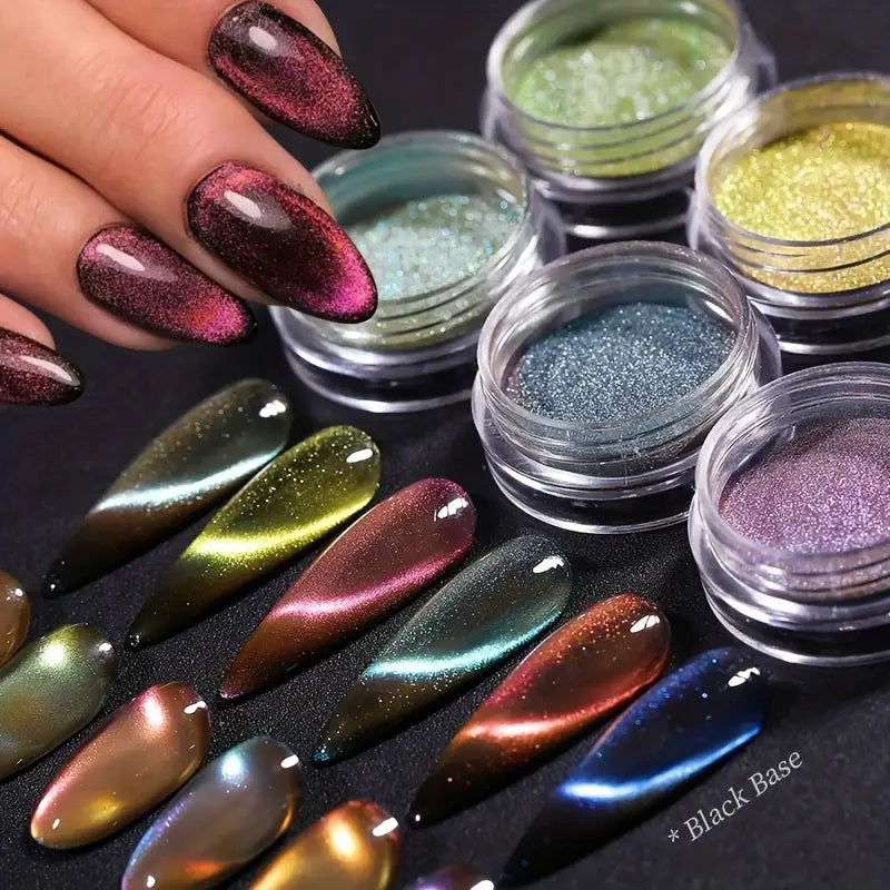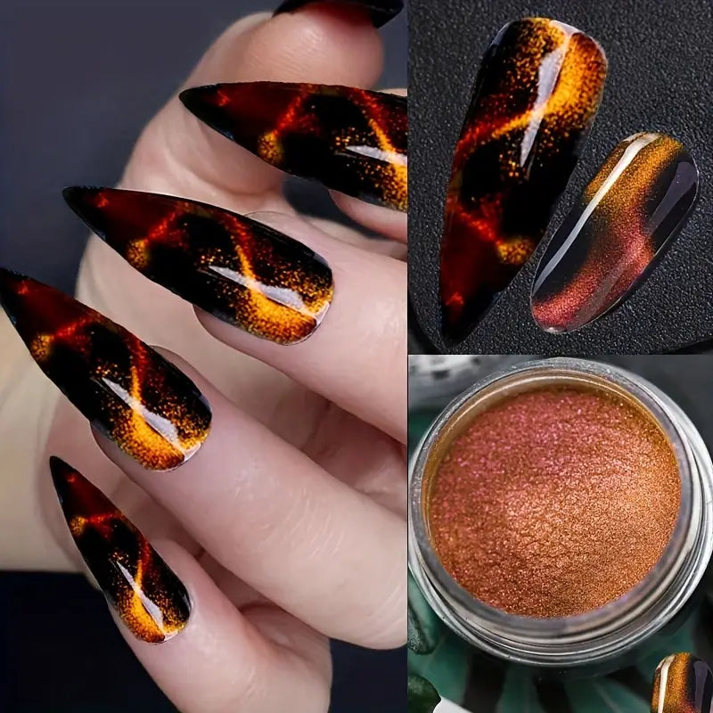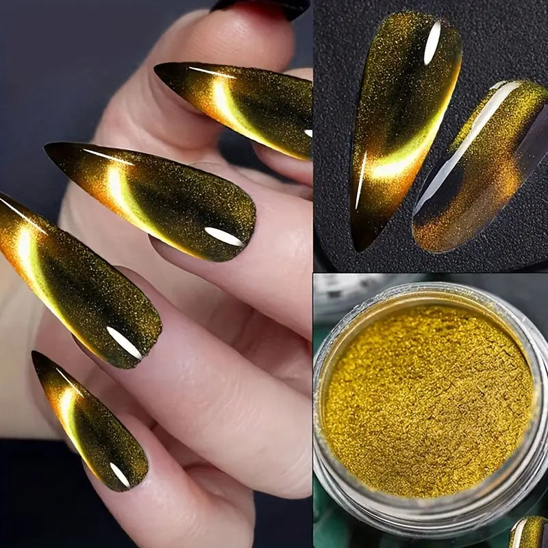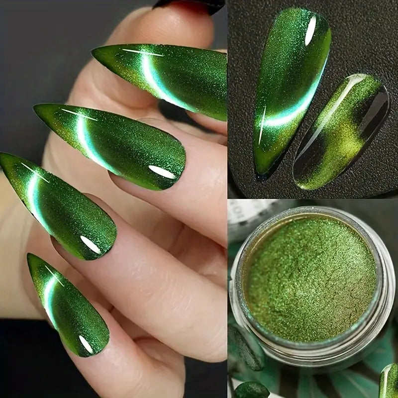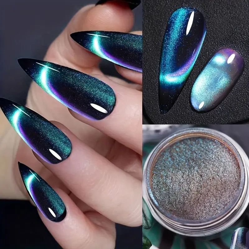 Vernis en Poudre Effet Œil de Chat 3D – Couleurs Métalliques Magnétiques pour Nail Art Intense