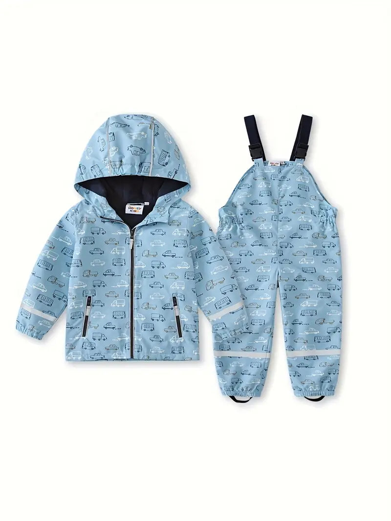 Veste Imperméable Enfant à Capuche – Coupe-Vent Légère Motifs Voitures Bleue