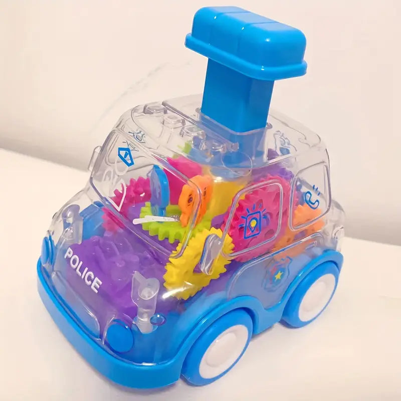 Faites découvrir l’ingénierie dès le plus jeune âge avec cette voiture éducative à engrenages visibles. En appuyant sur le large bouton et en la poussant, l’enfant observe le mécanisme se mettre en mouvement, intégrant naturellement la cause à effet. La coque transparente révèle chaque transmission, éveillant la curiosité tout en nourrissant l’imagination autour de missions de police. Un jouet d’éveil intelligent, robuste et pensé pour un apprentissage actif.